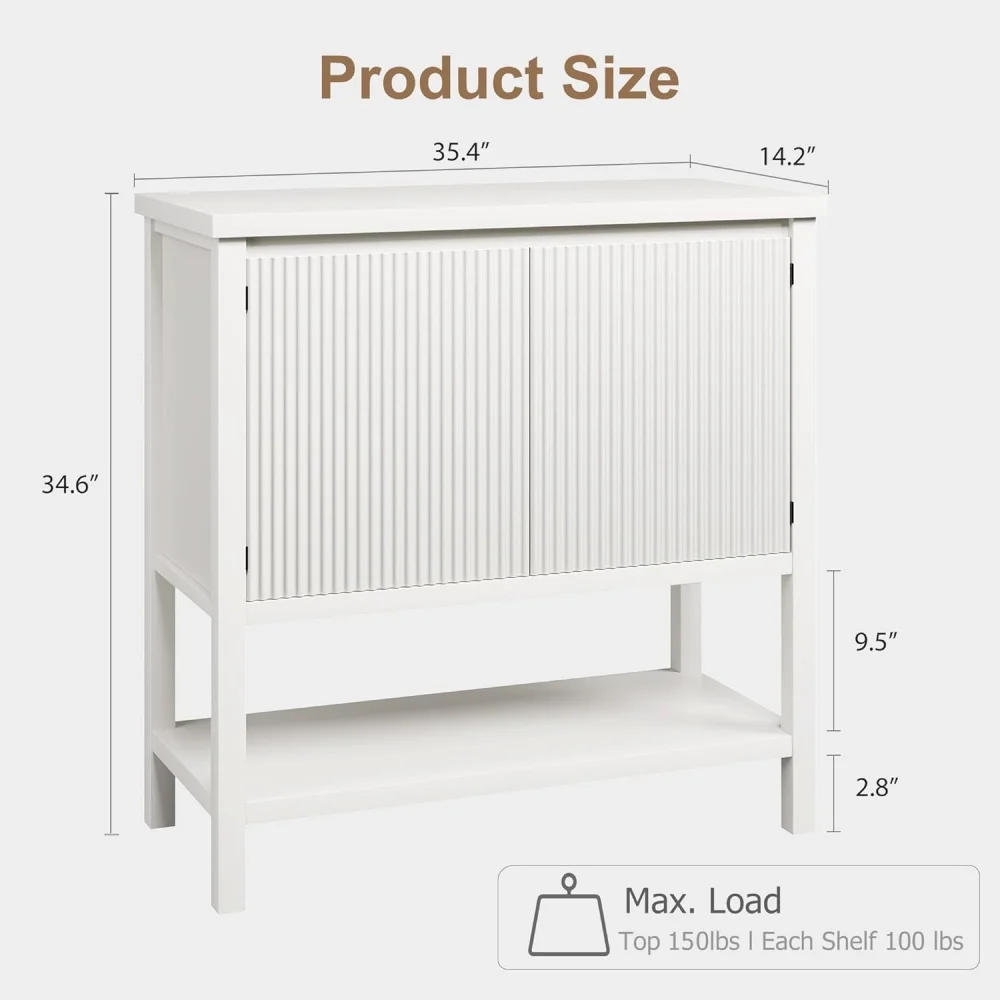 Coffee Bar Cabinet Storage Cabinet with 2 Wave Panel Doors Entryway Table with Storage Shelf Buffet Sideboard for Kitchen Hallwa