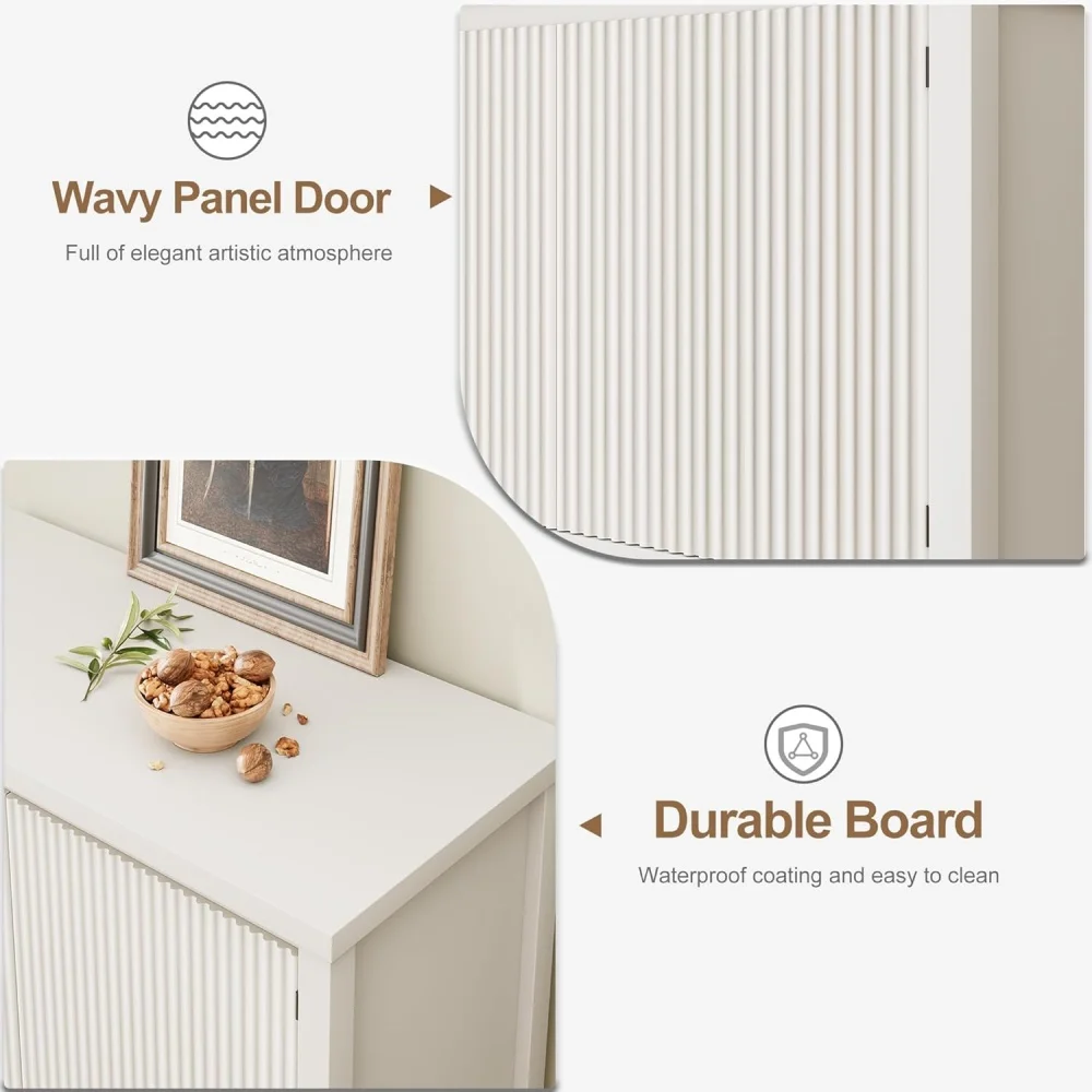 Coffee Bar Cabinet, Storage Cabinet with 2 Wave Panel Doors, Entryway Table with Storage Shelf, Modern Buffet Sideboard for Kitchen, Hallway, Dining Room, Living Room