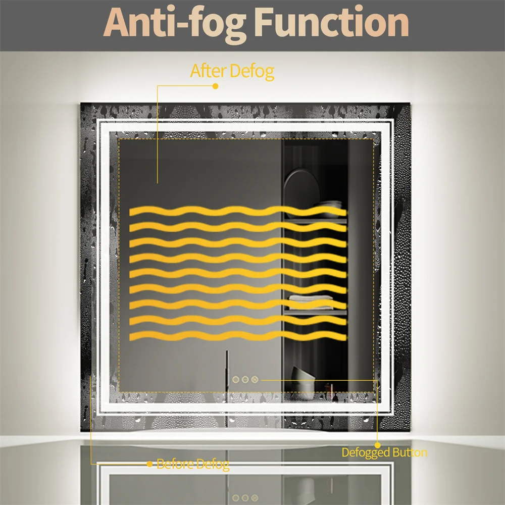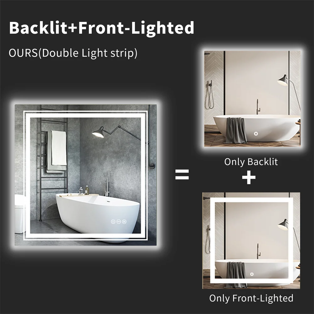 LUVODI Square Illuminated Wall Bathroom Mirror with LED Lights Dimmable Defog Mirror on Sink